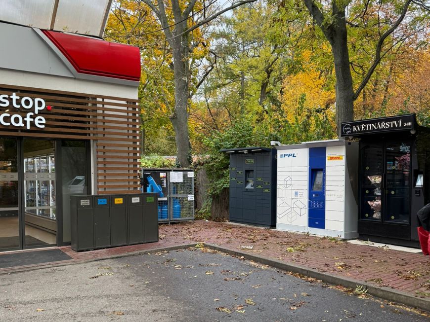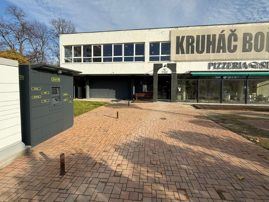 od hlavního vchodu nalevo, směrem k prodejně Mountfield