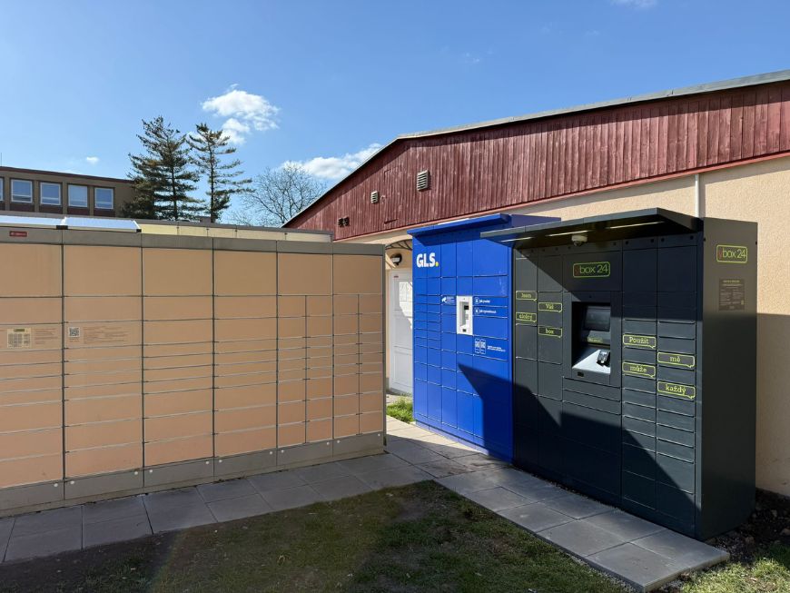 1. NP - kryté parkoviště, u hl. vchodu z parkoviště - OZNAČENÍ „výdejní boxy“